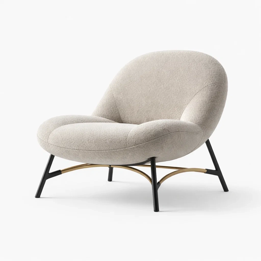 Sedia da relax in tessuto crema con gambe in legno 80x78x72 cm